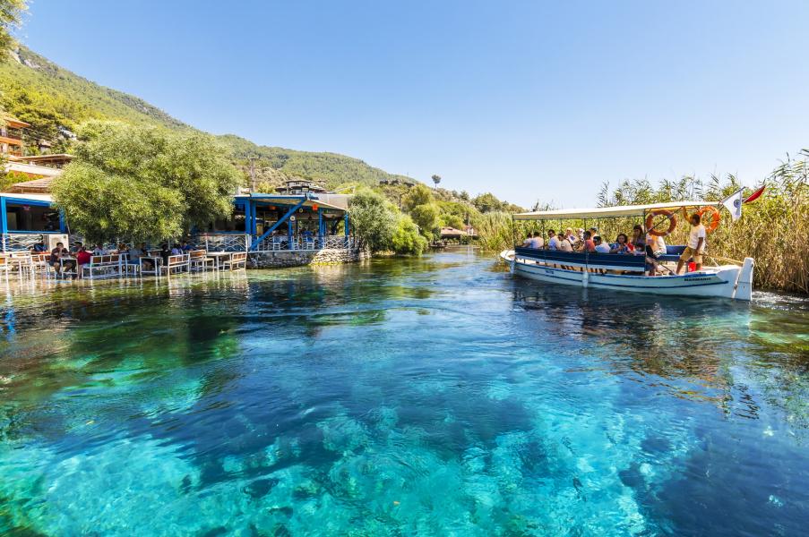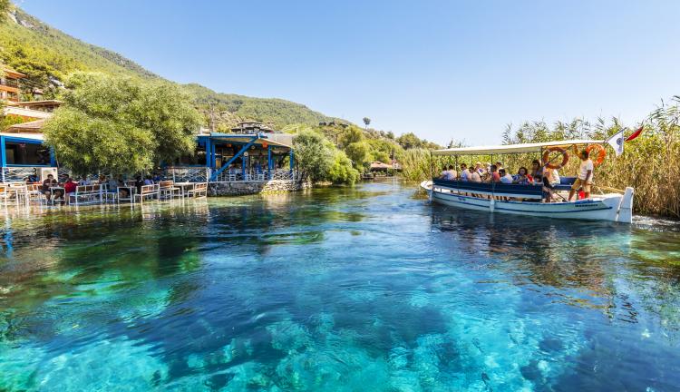 Akyaka – Azmak Nehri Tekne Turu; Gezimizin bir sonraki durağı, Gökova Körfezi’nin incisi Akyaka oluyor. Akyaka’ya ulaştığımızda ilk olarak Azmak Nehri’nde tekne turuna çıkıyoruz.